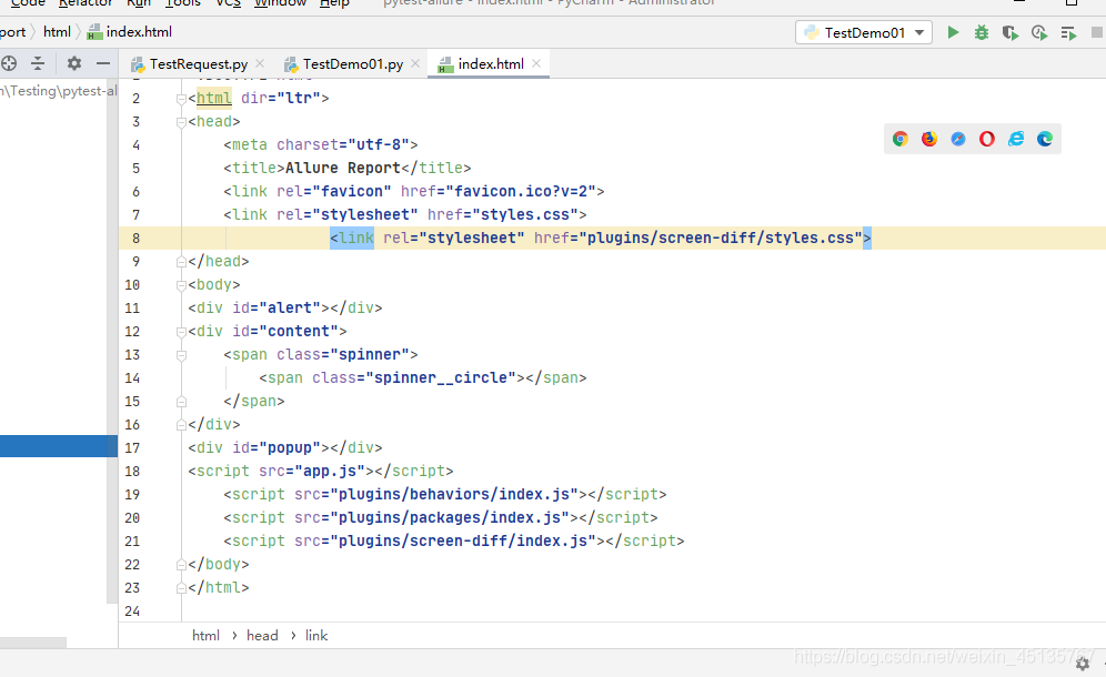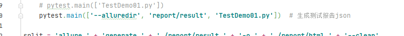 運行的時候加上 pytest.main ( ‘–alluredir', ‘report/result', ‘TestDemo01.py']) 會在當前文件夾創(chuàng)建一個report文件夾,在report文件夾下創(chuàng)建result