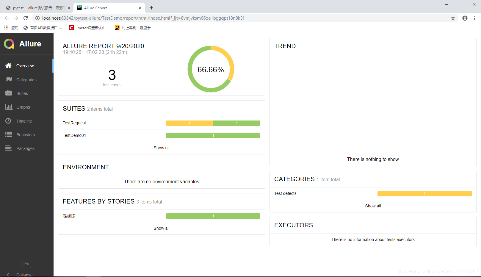 pytest test_baidudemo.py -s -q --alluredir=./result/ #執(zhí)行測試用例,并生成測試報告數(shù)據(jù)在當前文件夾result文件下 allure serve ./result/ #啟動allure,并使用result下的測試結(jié)果數(shù)據(jù)生成測試報告