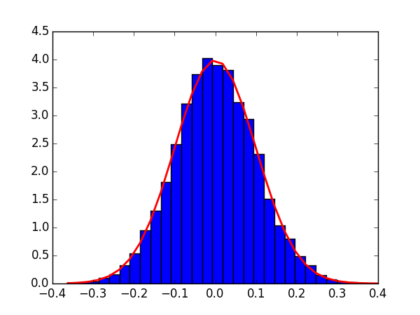 我們看使用matplotlib.pyplot便捷而強大的語法如何進行高斯分布的擬合: