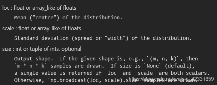 numpy.random.normal(loc=0.0, scale=1.0, size=None)