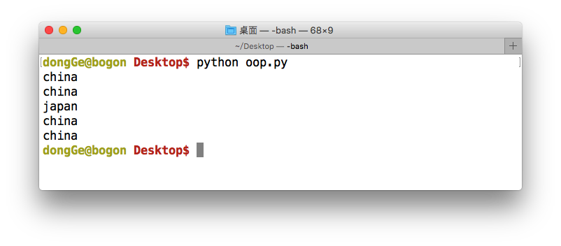 class People(object): country = 'china' #類屬性 print(People.country) p = People() print(p.country) p.country = 'japan' print(p.country)#實例屬性會屏蔽掉同名的類屬性 print(People.country) del p.country #刪除實例屬性 print(p.country)