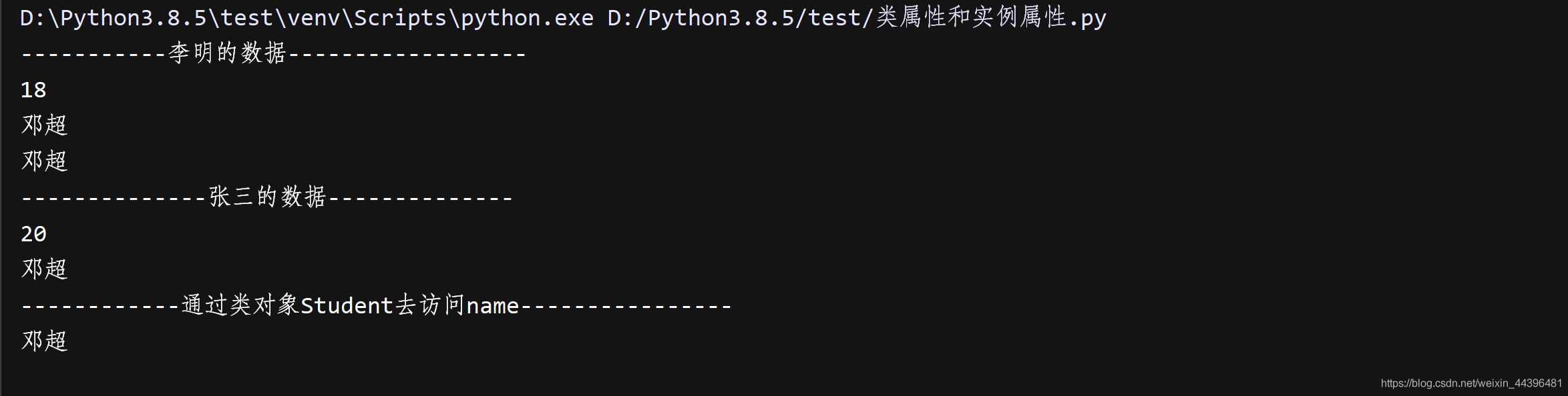 Student.name='鄧超'#通過類對象去修改類屬性 因為name屬于類屬性