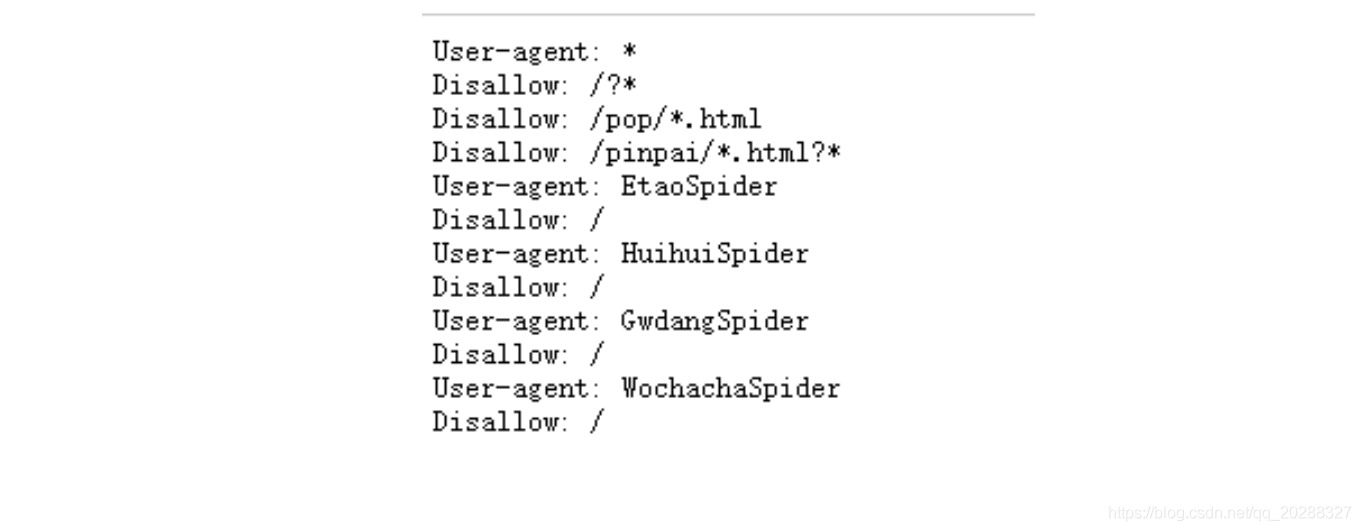 第一個的意思就是說對于所有的爬蟲,不能爬取在/?開頭的路徑,也不能訪問和/pop/*.html 匹配的路徑。