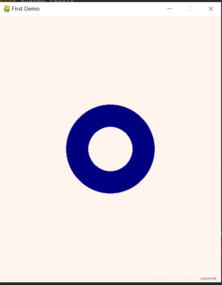pygame.draw.circle(screen, color=NavyBlue, center=position, radius=100, width=50)