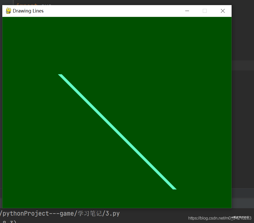 pygame.draw.line(screen, color2, (150, 150), (450, 450), width=10)