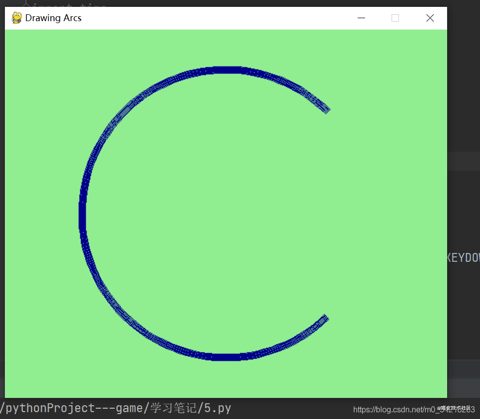 pygame.draw.arc(screen, color2, rect2, ang1, ang2, width=10)