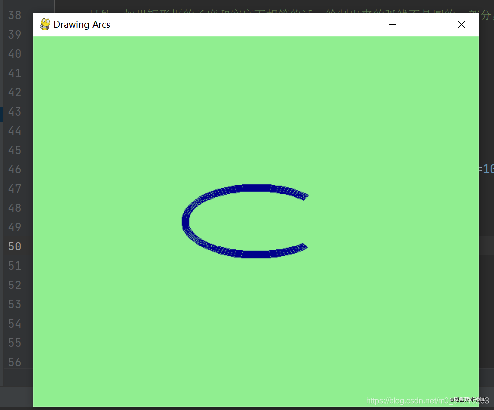另外,如果矩形框的長(zhǎng)度和寬度不相等的話,繪制出來(lái)的弧線不是圓的一部分,