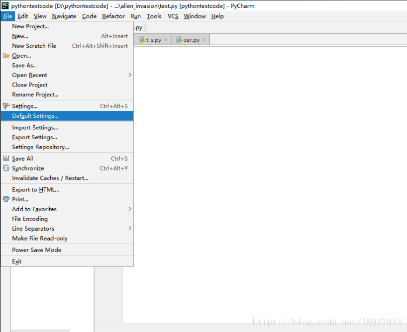 step1:在file中找到default settings
