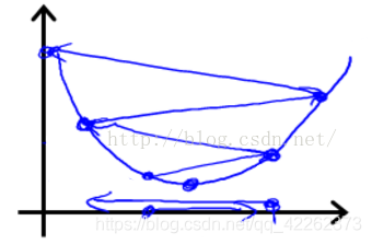 如圖所示,步長(學(xué)習(xí)率)太大容易跨過最優(yōu)解。