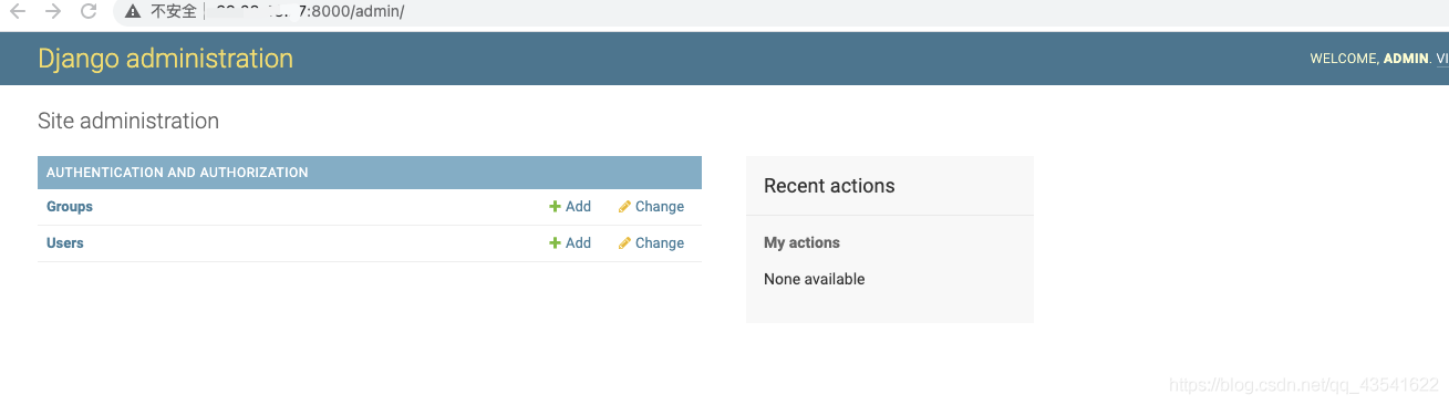 IP(自己的IP):8000/admin/ ##admin為創(chuàng)建的超戶