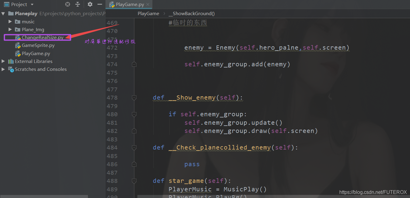 子彈的話分兩種,一個是飛機(jī)子彈,一個是敵機(jī)子彈,敵機(jī)的自帶檢測碰撞。一方面是方便分?jǐn)?shù)統(tǒng)計(jì)(敵機(jī)擊中飛機(jī)幾次)了另一方面也是因?yàn)轱w機(jī)是自定義的沒有辦法用pygame的事件檢測(自帶的)