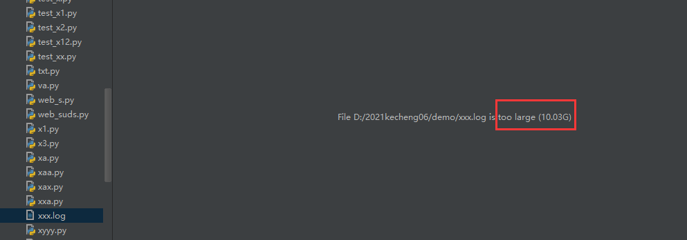 循環(huán)寫入到 xxx.log 文件,運行 3-5 分鐘,pycharm 打開查看文件大小大于 10G