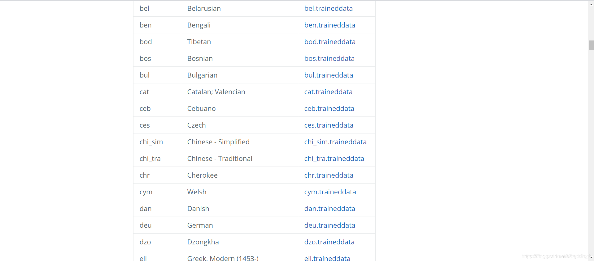 Tesseract默認(rèn)是不支持中文的,如果想要識(shí)別中文或者其它語言需要下載相應(yīng)的語言包,下載地址如下:https://tesseract-ocr.github.io/tessdoc/Data-Files ,進(jìn)入網(wǎng)站后我們往下翻: