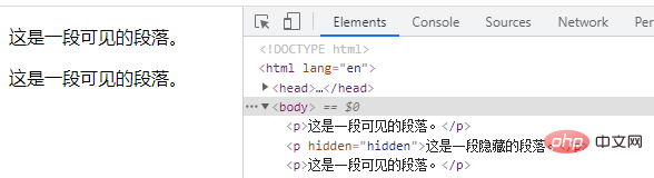 瀏覽器不應(yīng)顯示已規(guī)定 hidden 屬性的元素。