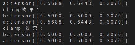 結(jié)果為如下圖,可見張量a在調(diào)用clamp_函數(shù)后其本身的值也會發(fā)生改變,但是調(diào)用clamp的時候則只會返回一個修改后的副本。