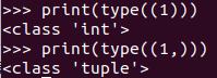 ‘(1)'這種寫法得到的是一個int類型的數(shù)據(jù),而‘(1, )'得到的是一個turple類型的數(shù)據(jù)。驗證如下: