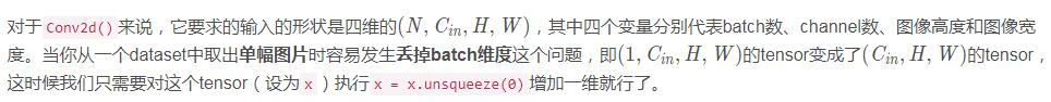上面說的是最可能的情況,如果你發(fā)現(xiàn)圖片已經(jīng)是四維的卻還有這個報錯,請檢查你Conv2d()的輸入?yún)?shù)。