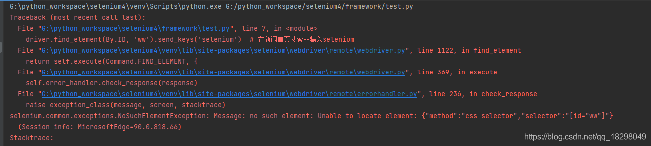 driver.find_element(By.ID, 'kw').send_keys('selenium')# 百度首頁輸入框輸入selenium