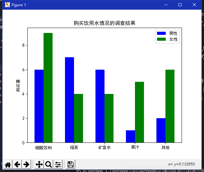 plt.title('購(gòu)買(mǎi)飲用水情況的調(diào)查結(jié)果') # 圖形標(biāo)題