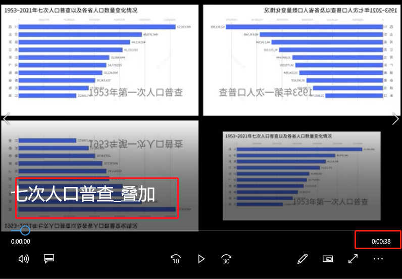 視頻:七次人口普查.mp4原視頻(38秒),視頻:七次人口普查5_25.mp4上面案例截取的視頻(20秒),最后合并成:七次人口普查_合并.mp4。