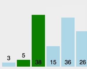 第二輪:然后數(shù)組再剩余的數(shù)中從第一個數(shù)依次比較相鄰的數(shù),將最大的數(shù)排在最后面。