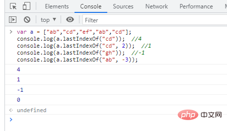var a = ["ab","cd","ef","ab","cd"];console.log(a.lastIndexOf("cd"));
