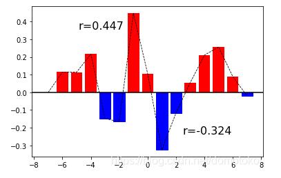 r=leadlagcor(data1,data2,n)#調(diào)用上面寫的函數(shù)做超前滯后相關(guān)