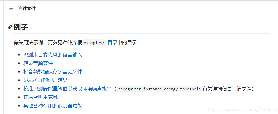 在官方文檔中提供了具體的識(shí)別來(lái)自麥克風(fēng)的語(yǔ)音輸入的代碼