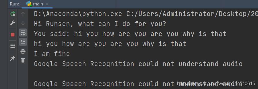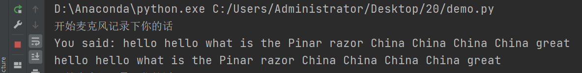 下面就是 speech_recognition 用麥克風(fēng)記錄下你的話,這里我使用的是