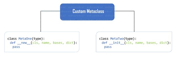 class EduFirst(type): def __new__(cls, name, base_cls, dict): pass class EduSecond(type): def __init__(self, name, base_cls, dict): pass