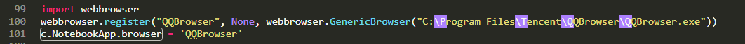 - 找到 #c.NotebookApp.browser = ‘' 并將其修改