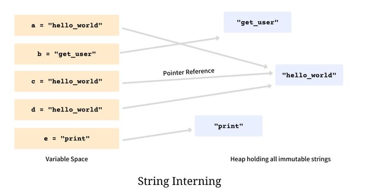 CPython 對(duì)常量(例如函數(shù)名、變量名、字符串字面量等)執(zhí)行字符串駐留。
