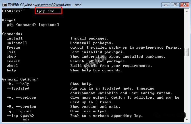 1.pip是一個(gè).exe的可執(zhí)行文件,在cmd輸入pip.exe就可以解決了
