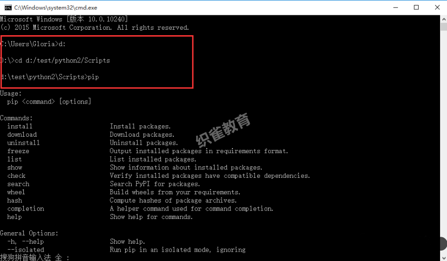 1.打開(kāi)cmd(快捷鍵:win+r),cd到pip所在的目錄,如D:\test\python2\Scripts