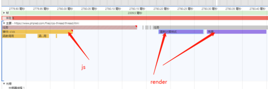 由上圖可以看到啟用js的2s內,渲染進程會等到kill函數執(zhí)行完成后才執(zhí)行,再看下面這張圖,可以看出margin的變化會導致dom重新布局,而布局會等kill函數執(zhí)行完成后才開始。就會導致