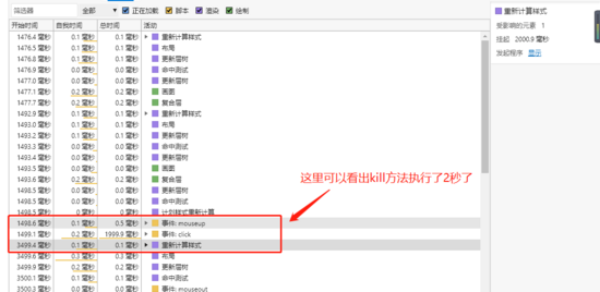 從上圖看出使用了transform的完全不受kill方法的影響,再來看下調試的圖表