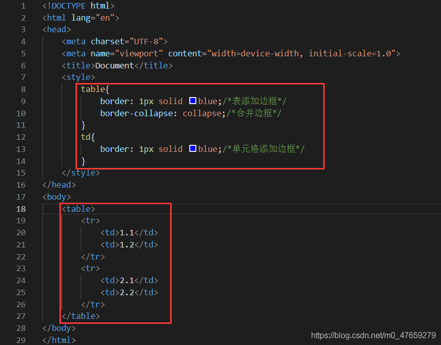 如果我們希望合并table與td的邊框,可以在table樣式加設(shè)置border-collapse的屬性值為collapse即可。如下圖: