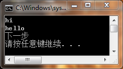 2.2去掉call call.bat hi hello中的call運(yùn)行結(jié)果如下: