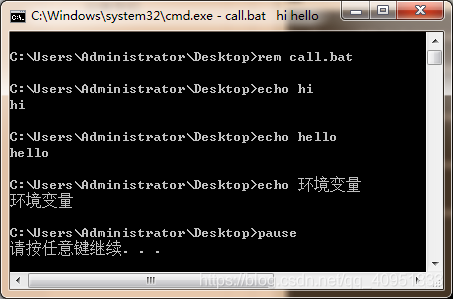 rem test.bat @echo off set a=環(huán)境變量 call call.bat hi hello echo 下一步 pause exit /b 0