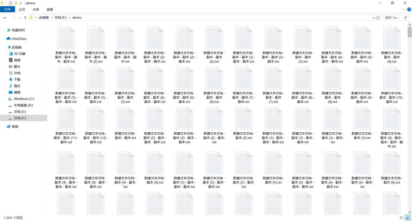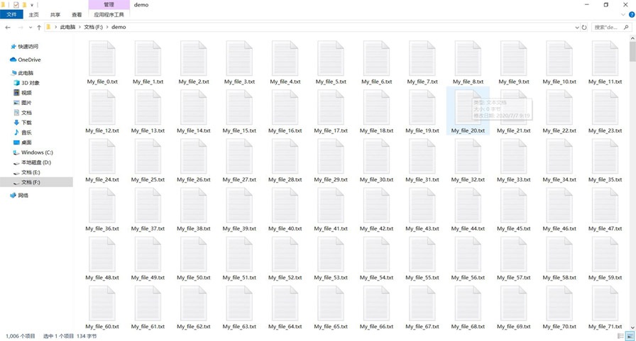 在示例中我創(chuàng)建了1005個(gè)文件,如下圖所示