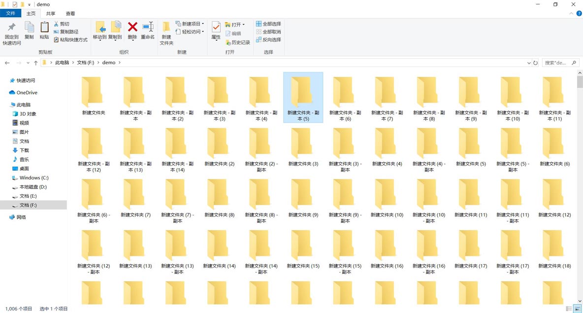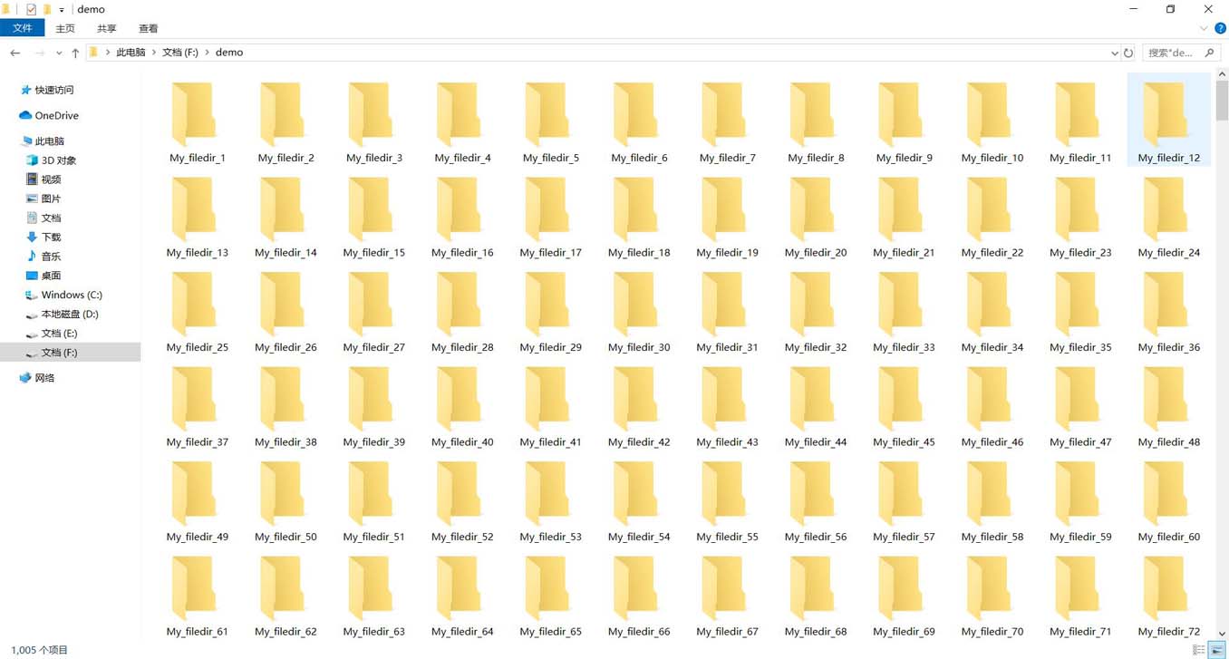 在示例中我創(chuàng)建了1005個(gè)文件夾,如下圖所示