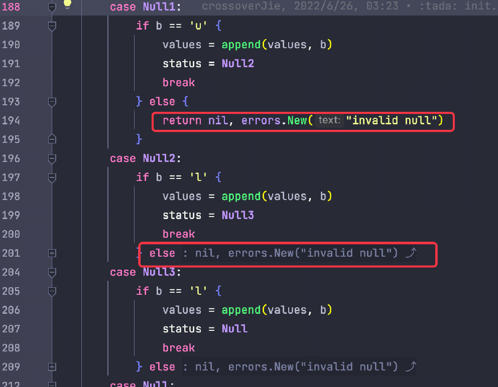 比如當(dāng)檢測到第一個字符串為 n 時,那后續(xù)的必須為u->l->l不然就拋出異常。