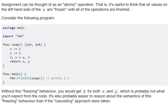 注意:Go語言的新特性 “Simultaneous Assignment” (平行賦值、多重賦值 ......)