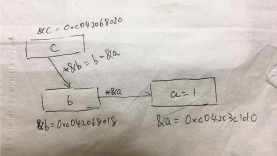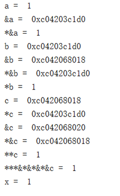*c = *&b = b = &a = 0xc04203c1d0