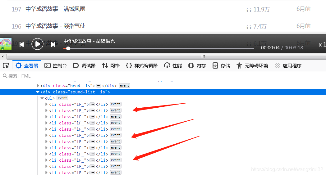 所有的音頻存放在class為1F_的li標(biāo)簽中,再來(lái)解析li標(biāo)簽:
