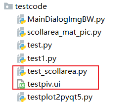 紅色框里的文件是實(shí)現(xiàn)效果展示的所有源文件。但是文件夾testcode是為了實(shí)現(xiàn)將Matplotlib圖像嵌入到Scoll Area中所做的所有工作,稍后我會(huì)將參考資源放入文章末尾