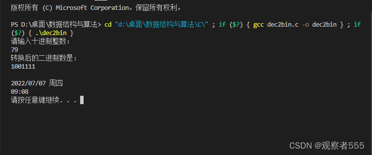 printf("轉(zhuǎn)換后的二進(jìn)制數(shù)是:\n");