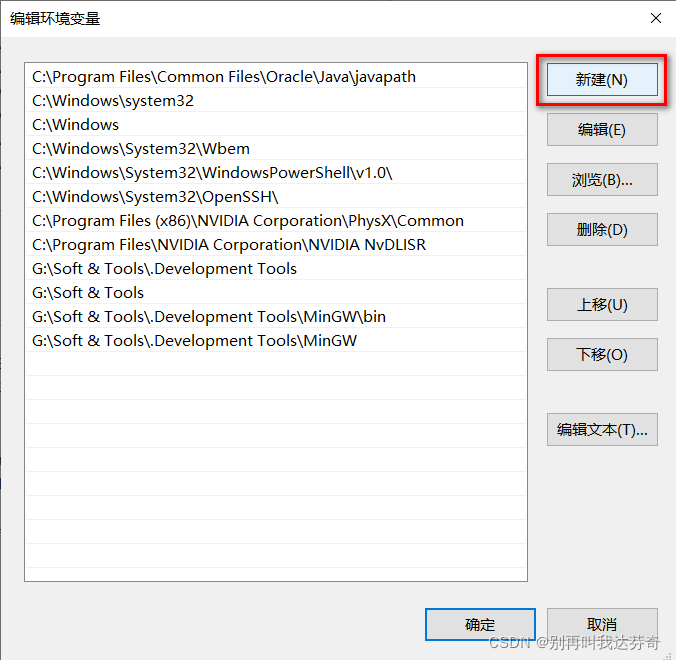 步驟五: 在彈出的編輯環(huán)境變量窗口中點(diǎn)新建