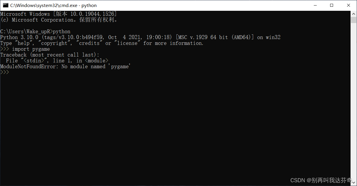 則代表你沒(méi)有安裝Pygame庫(kù)