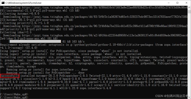 pip install -i https://pypi.tuna.tsinghua.edu.cn/simple scrapy
